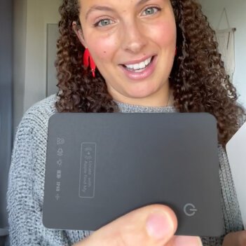 Charge the card, then bring it near your iPhone and tap once to connect it.
